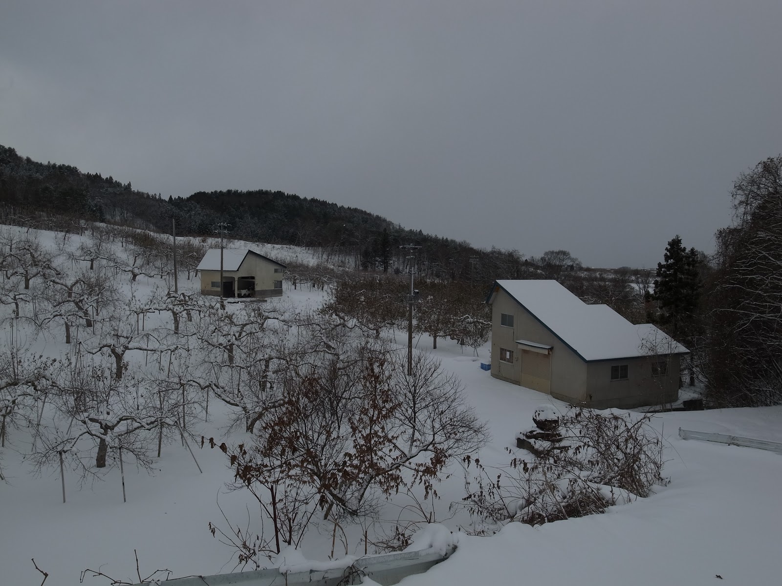 雪の里山を歩き、後半はりんご園の中を歩き、長勝寺を始めとする禅林三十三ヶ寺に至る。